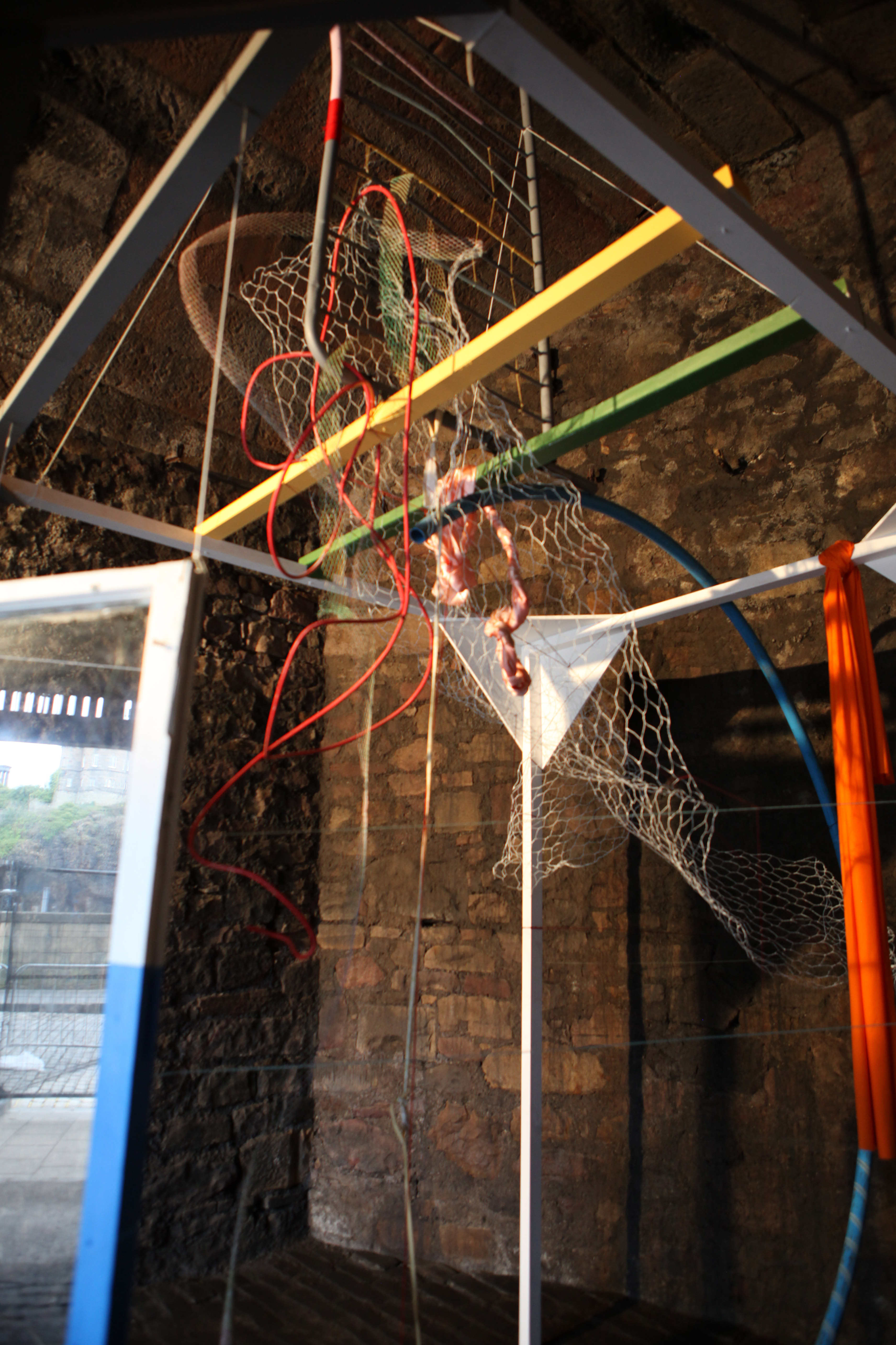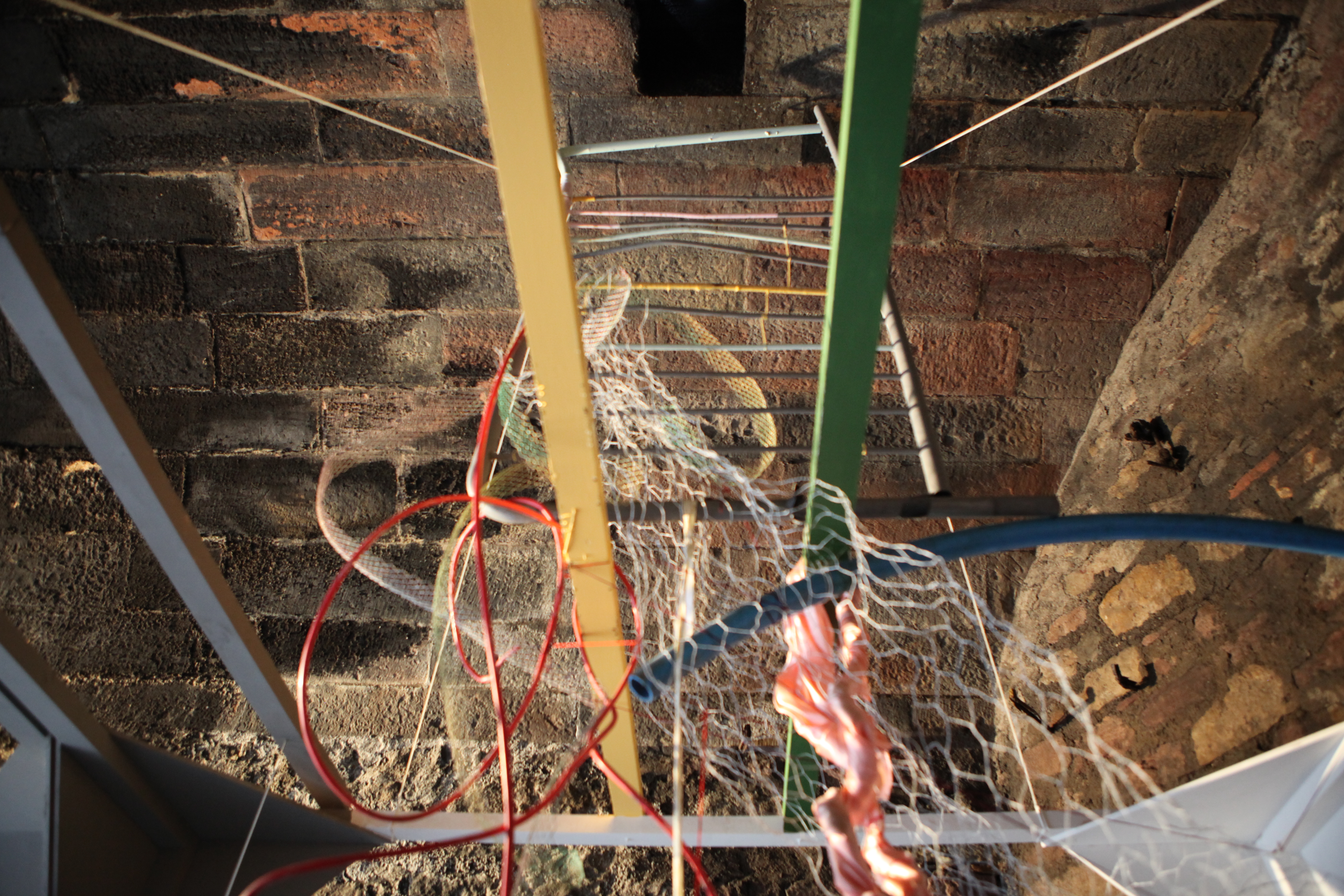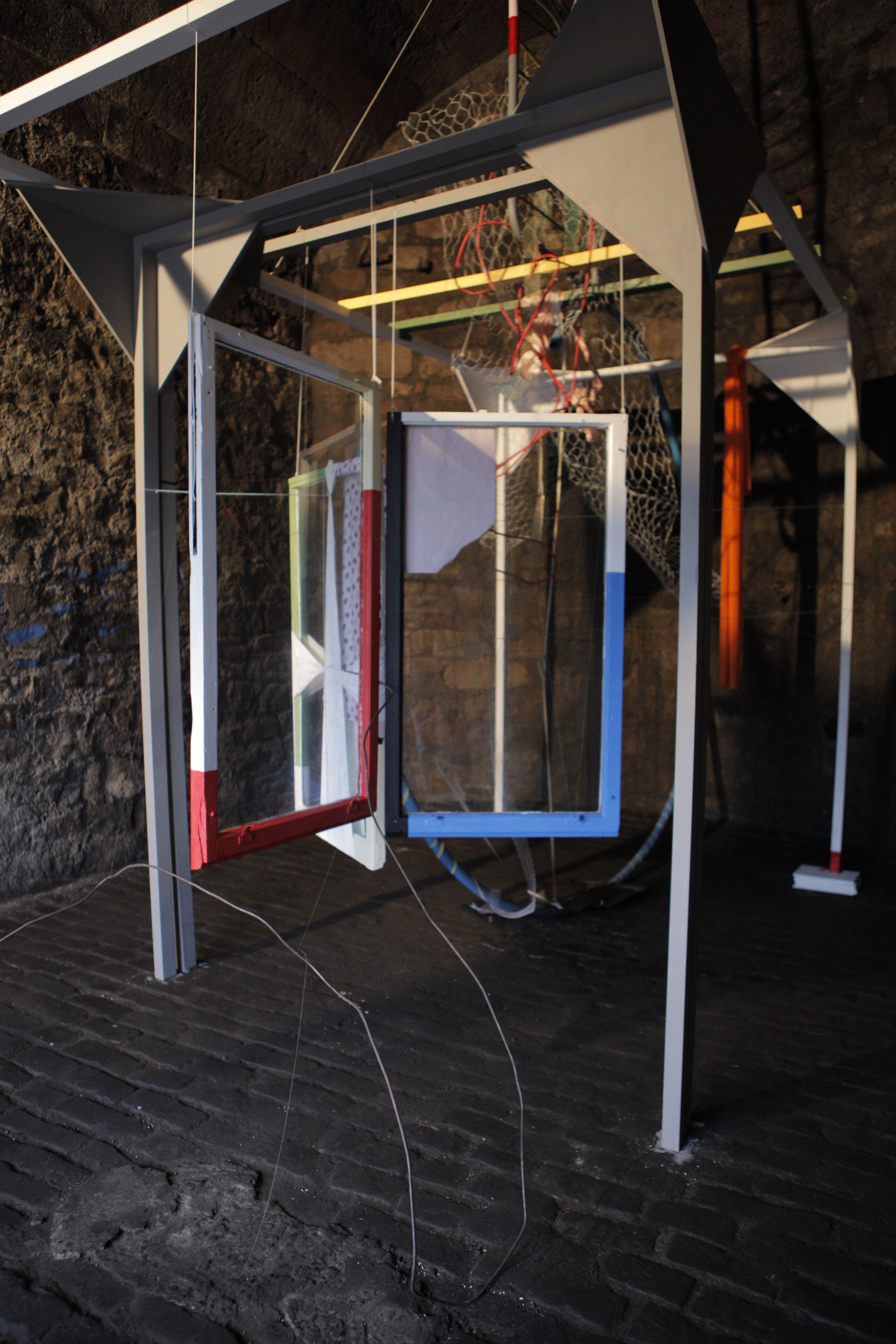 (Wood, Windows, Glass, Railing, Wire Mesh, Rusted Iron, Wool, Cable, Wire, Metal, Ribbon, Cloth, Needle, Thread), Dimensions Variable,